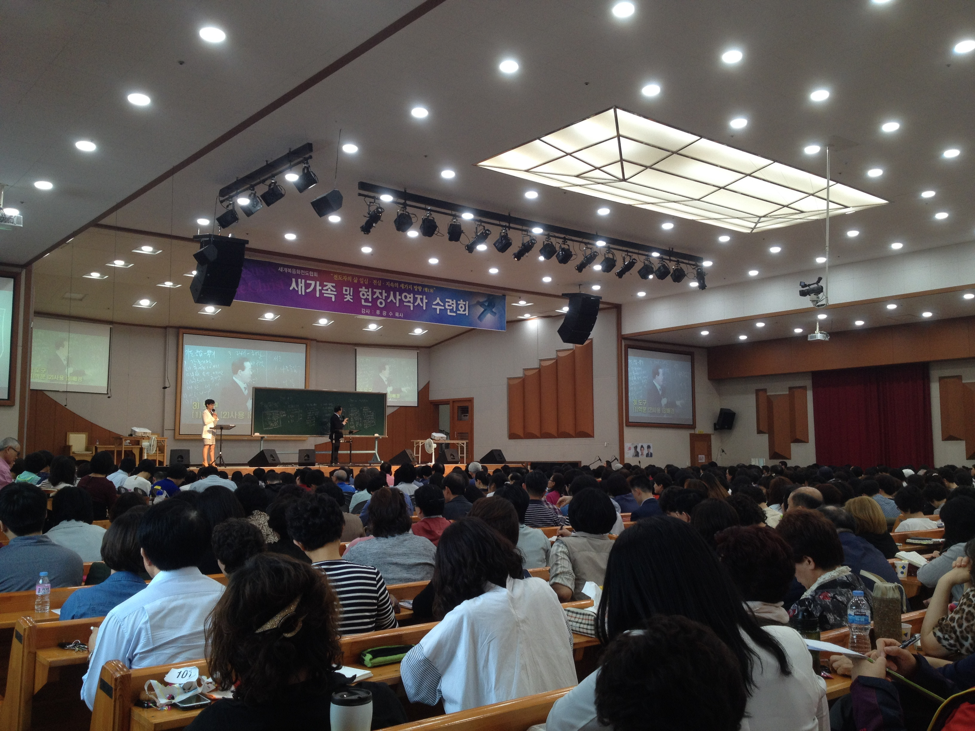 * 일시 : 2015.5.7.(목) * 장소 : 덕평 RUTC * 내용 : 새가족 및 현장사역자 수련회가 지난 7일 1,100여명이 참석한 가운데 덕평 RUTC에서 열렸습니다. 류광수 목사는 교회 안의 90%가 한계에 부딪혀 있거나 안되고 있다고 말하며 이들의 각인과 뿌리, 체질을 복음으로 바꿔줄 방법을 자세하게 설명했습니다. 특히 류목사는 가장 먼저 말씀으로 생각부터 바꿔줘야 한다고 강조하며 그때부터 올바른 기도를 할 수있게 된다고 말했습니다. 또 교회는 새가족들에게 이러한 부분을 제대로 알려줄 집중훈련을 일부러 만들어 볼 필요가 있다고 말했습니다.