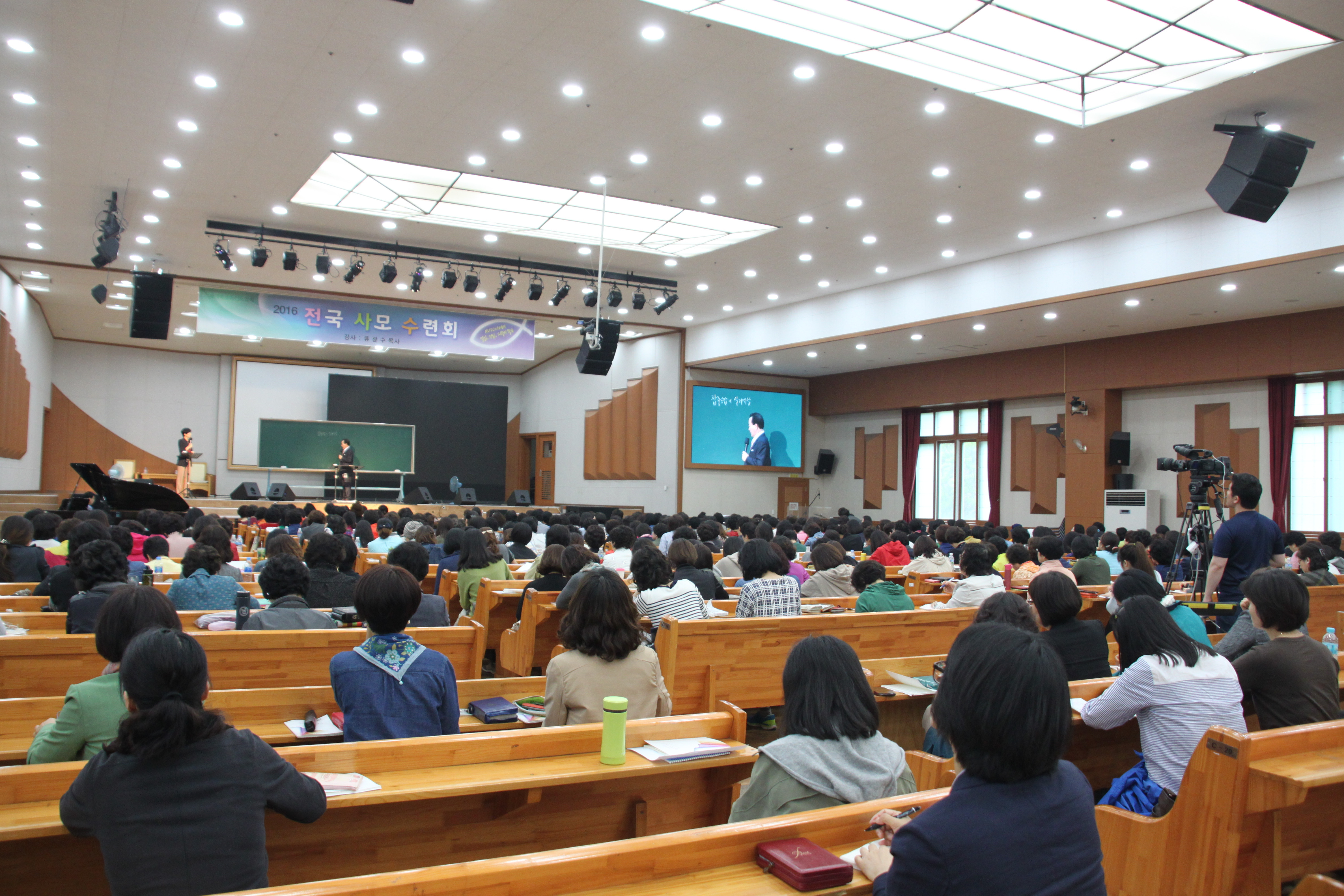 * 일시 : 2016.5.9(월)~10(화) * 장소 : 덕평 RUTC * 내용 : 전도협회 산하 교회의 400여명의 사모들이 5월 9일부터 이틀간 덕평 RUTC에 모여 집중의 시간을 가졌습니다. 강사로 선 류광수 목사는 "모든 사모들은 집중전도의 흐름 속에서 성도들이 사도행전 1장 1절, 3절, 8절로 각인을 바꾸고, 실제 응답을 받도록 본격적으로 나서라"고 강조하였습니다. (1강 : 집중 응답의 실제 역할, 2강 : 집중 치유의 실제 역할) 이번 수련회에서 호산나교회 최태식 목사가 개강예배 설교를 하였고, 하나교회 강영자 원로사모, 임마누엘교회 김영숙 사모가 각각 간증하였으며, 왜관선교교회 박우영 사모는 "후대 양성을 위한 발판 - 어떻게 할 것인가?"라는 주제로 특강을 하였다. 또한 수련회 기간 중 열린 정기총회에서는 회장에 일산영광교회 김순례 사모, 부회장에는 속초하나로교회 이숙경 사모 등 8명의 임원이 새로 선출되었다. 한편 사모회는 비복음적인 관습들이 스며있는 결혼예식문화를 복음적으로 바꾸기 위한 운동을 조만간 시작할 예정이며, 이를 위해 성경적, 전문적 연구를 바탕으로 준비해 나가고 있다고 말했다.