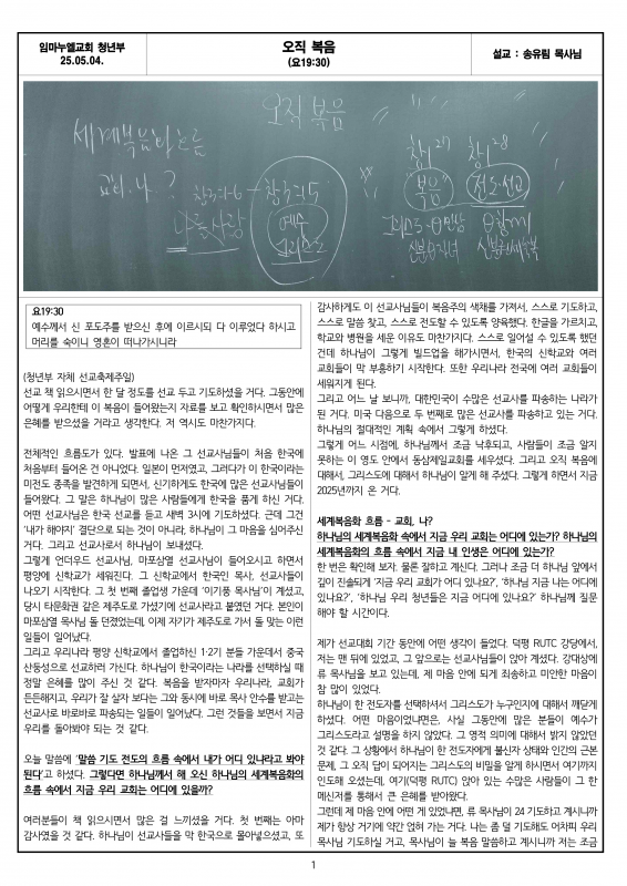 2025.05.04 메시지 - 오직 복음(요19:30) |