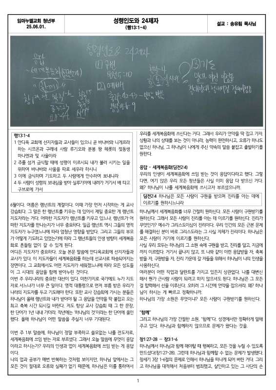 2025.06.01 메시지 - 성령인도와 24제자(행13:1~4)