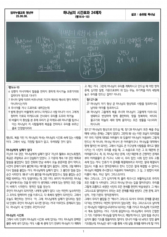 2025.06.08 메시지 - 하나님의 시간표와 24제자(행16:6~10) |
