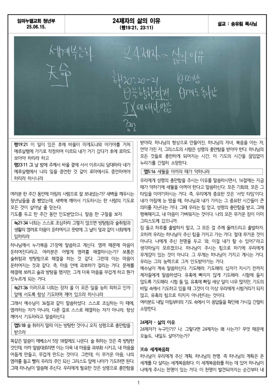 2025.06.15 메시지 - 24제자의 삶의 이유(행19:21,23:11)