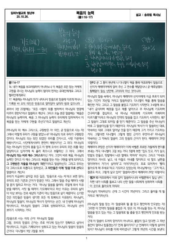 2025.10.26 메시지 - 복음의 능력 (롬 1:16-17)