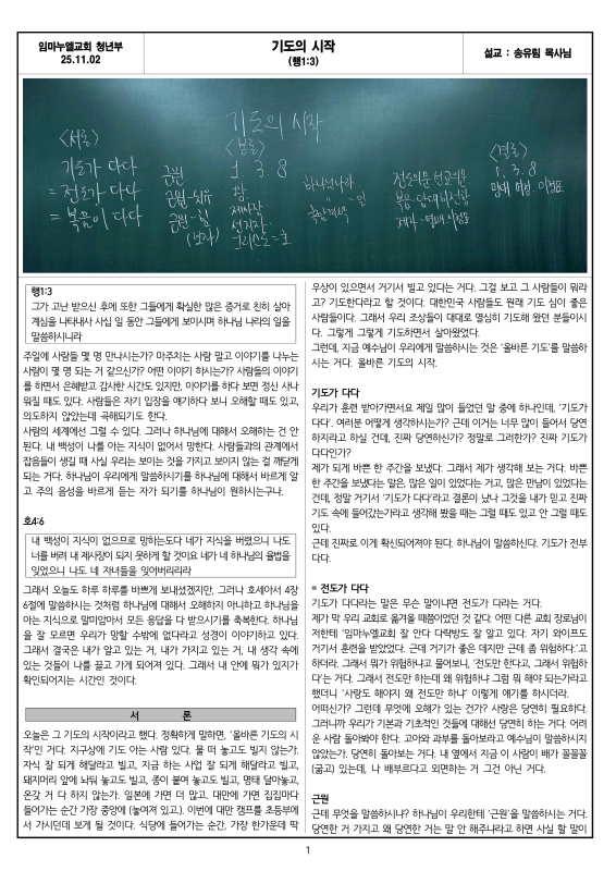 2025.11.02 메시지 - 기도의 시작 (행 1:3) |