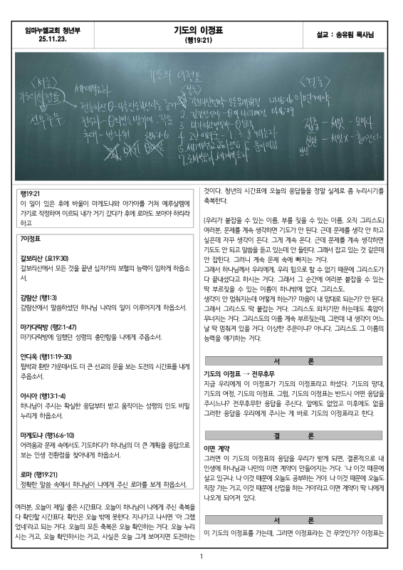 2025.11.23 메시지 - 기도의 이정표 (행 19:21) |