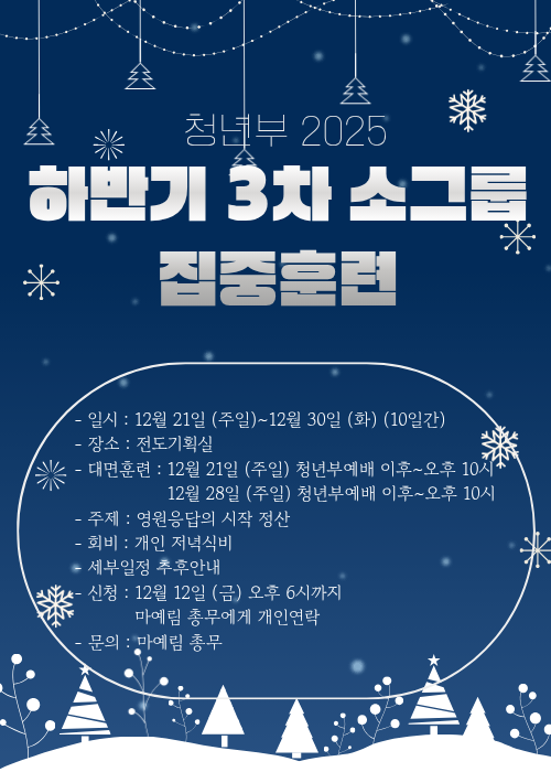 청년부 하반기 3차 소그룹 집중훈련 스케쥴