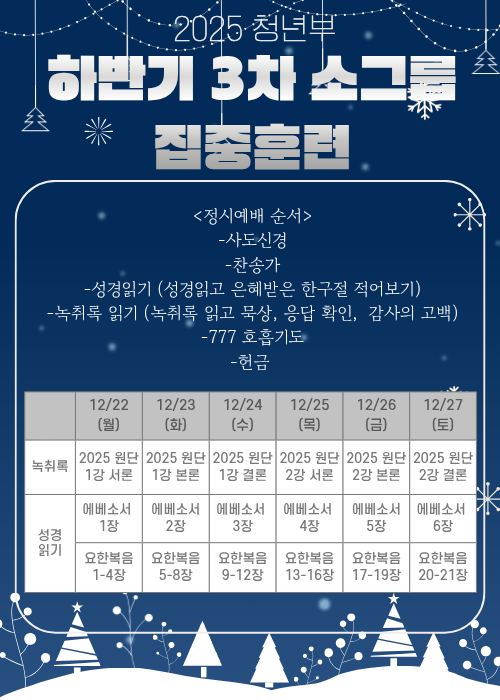 청년부 하반기 3차 소그룹 집중훈련 스케쥴 |