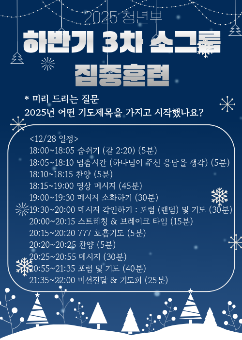 청년부 하반기 3차 소그룹 집중훈련 스케쥴