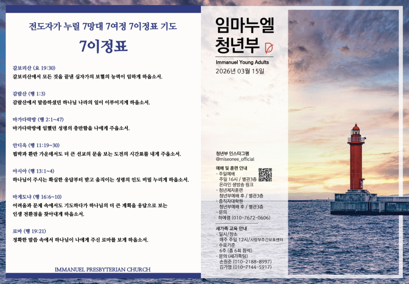 2026.03.15 청년부 예배 주보 |