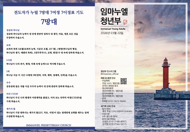 2026.03.22 청년부 예배 주보 |